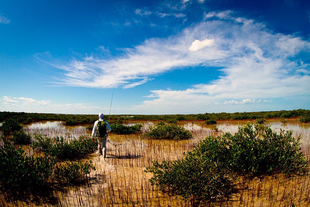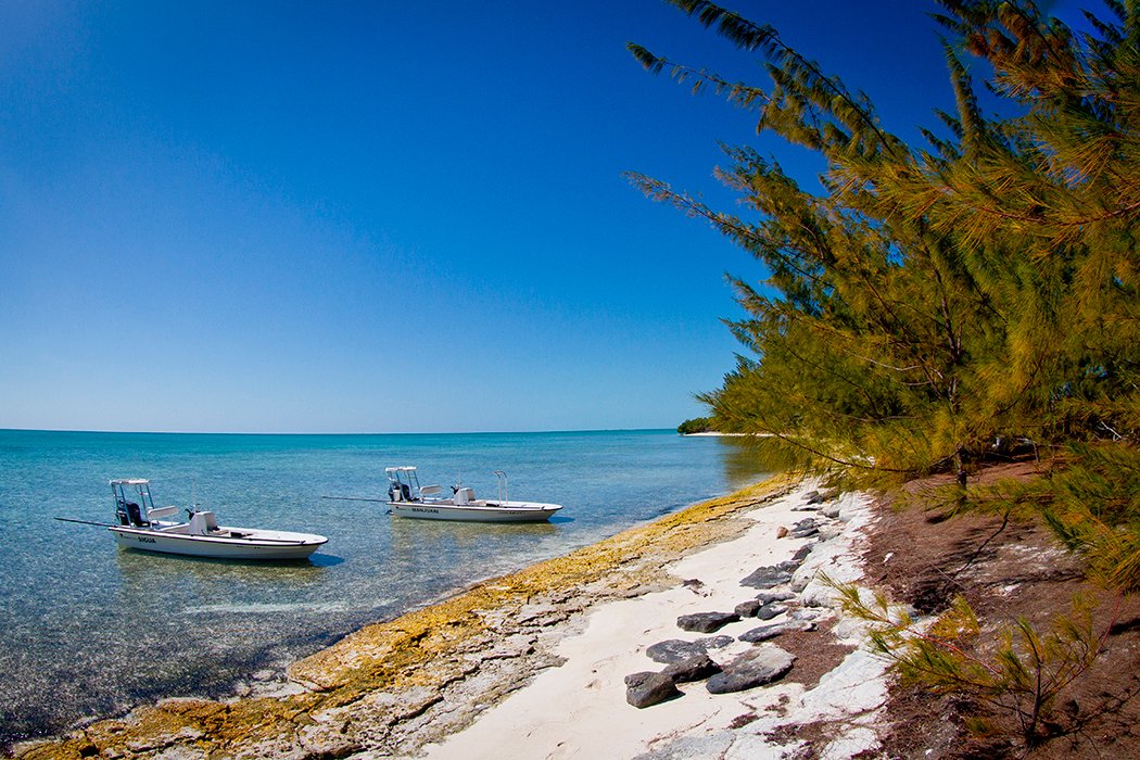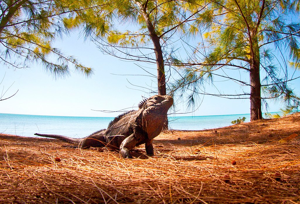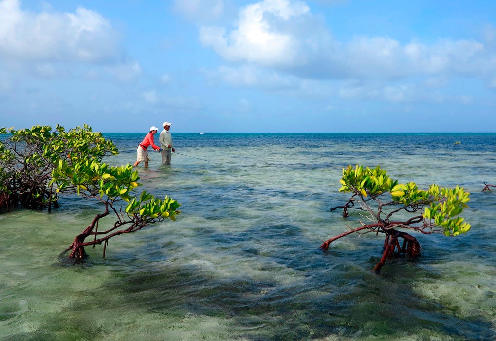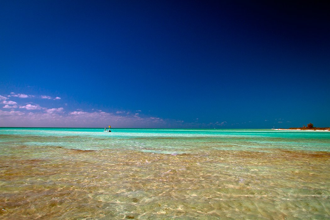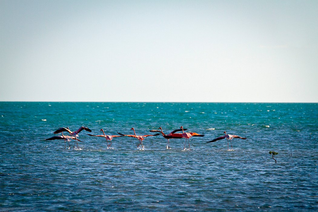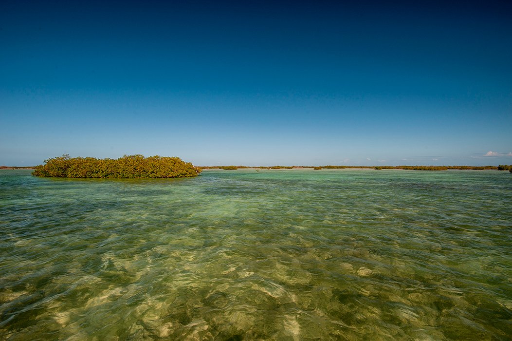 The beaches stretch along the north-eastern coast of the cay, while the western coast is covered with mangroves.